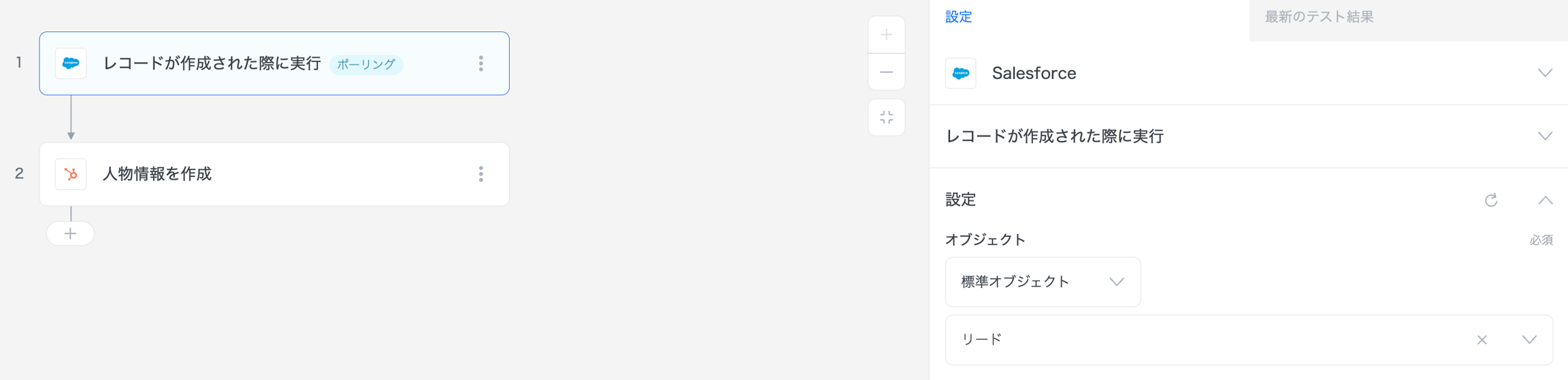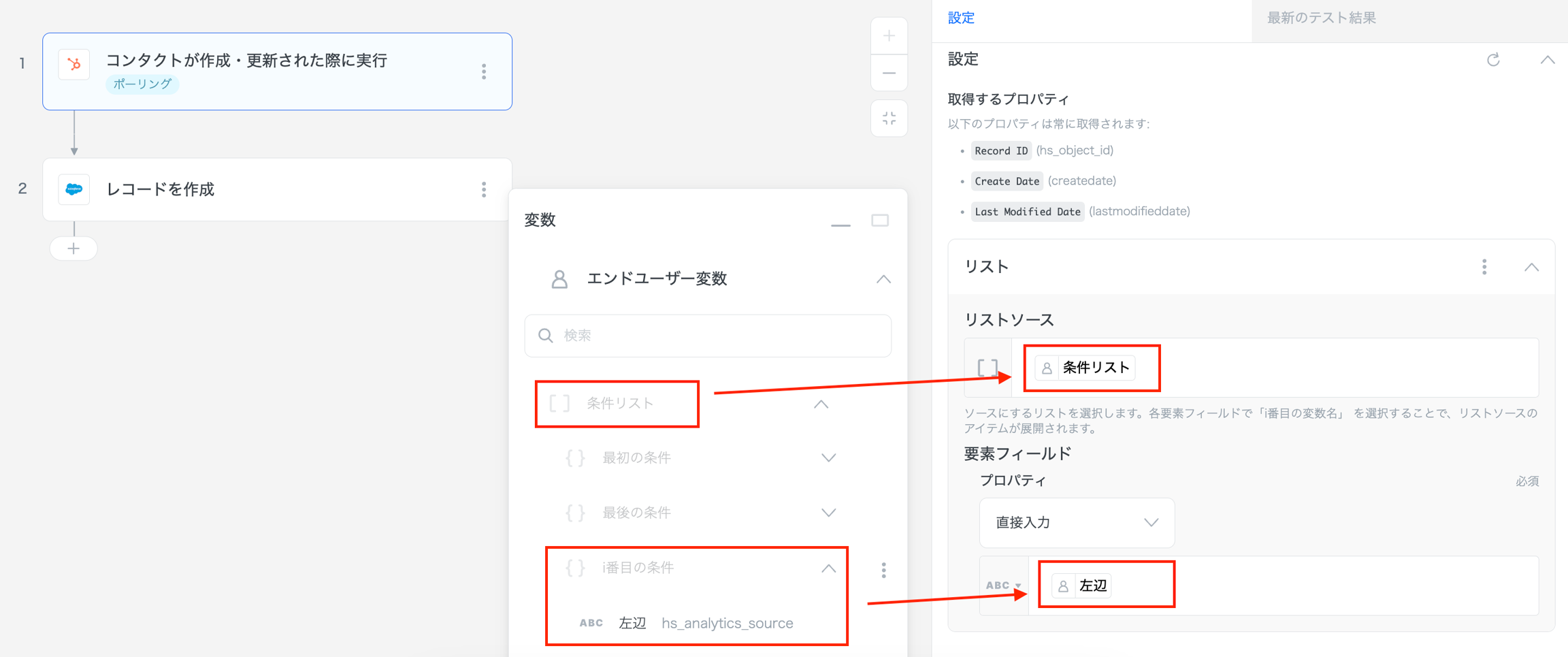 これにより、HubSpotのレコードが作成された際に、エンドユーザーが指定した条件が満たされた場合のみ、Salesforceにデータを連携することができます。