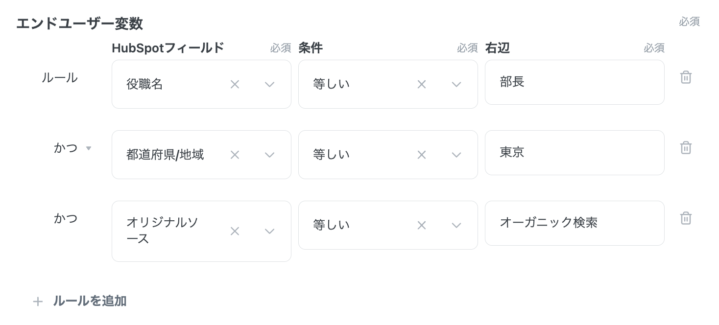 これにより、左辺にはエンドユーザーが「コンタクトオブジェクトの任意のフィールド」を指定できるようになり、