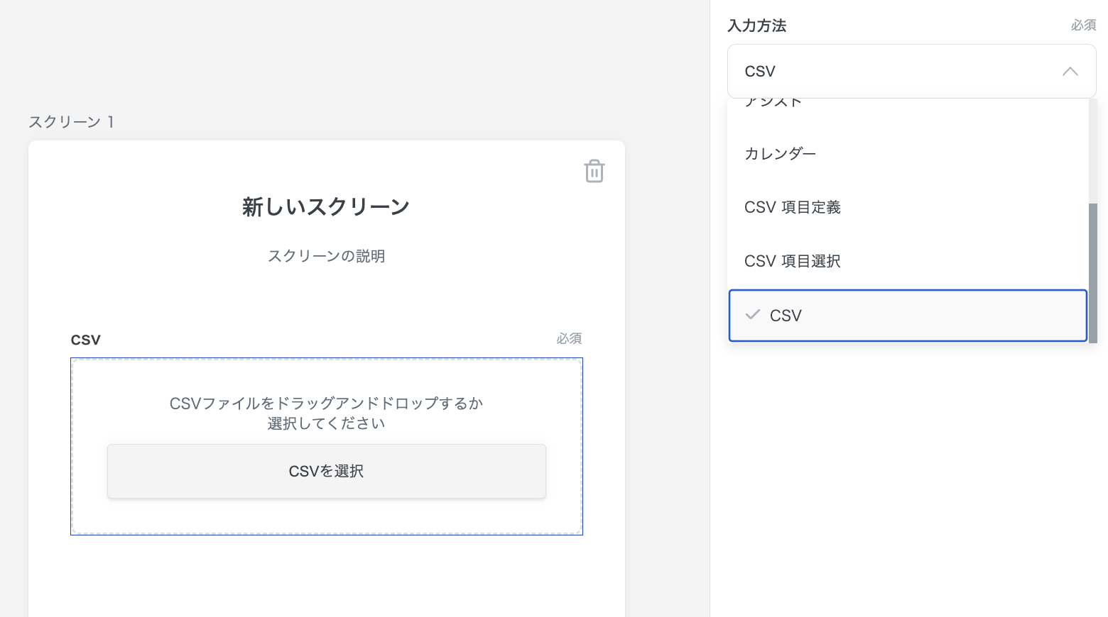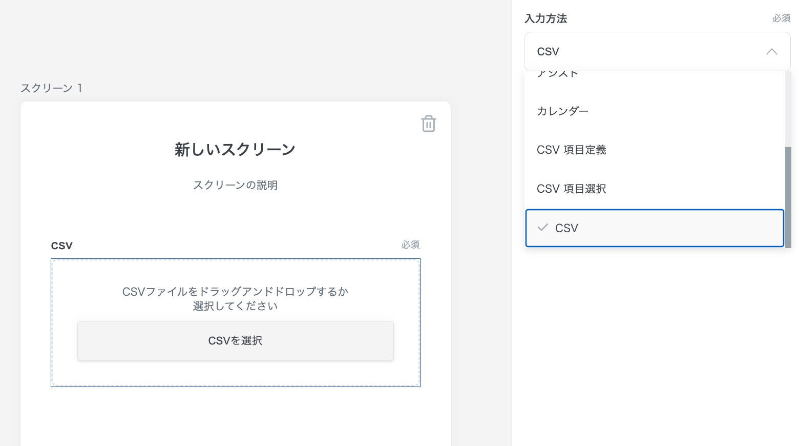 CSVウィジェットではエンドユーザーからCSVファイルのアップロードを受け付け、中身を文字列としてソリューション内で利用することができます。
