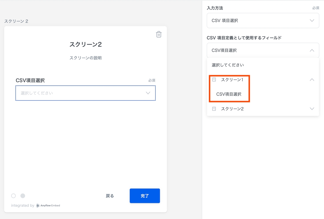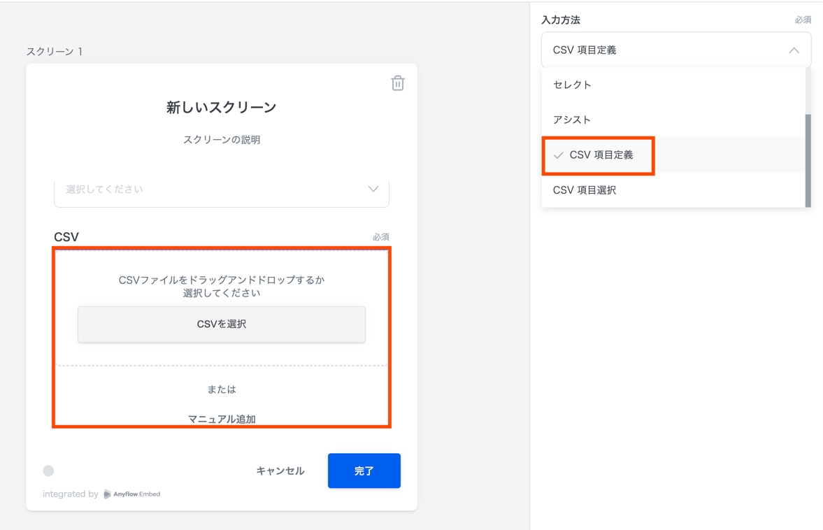 エンドユーザーがCSVを選択すると、以下のようなUIに変化します。